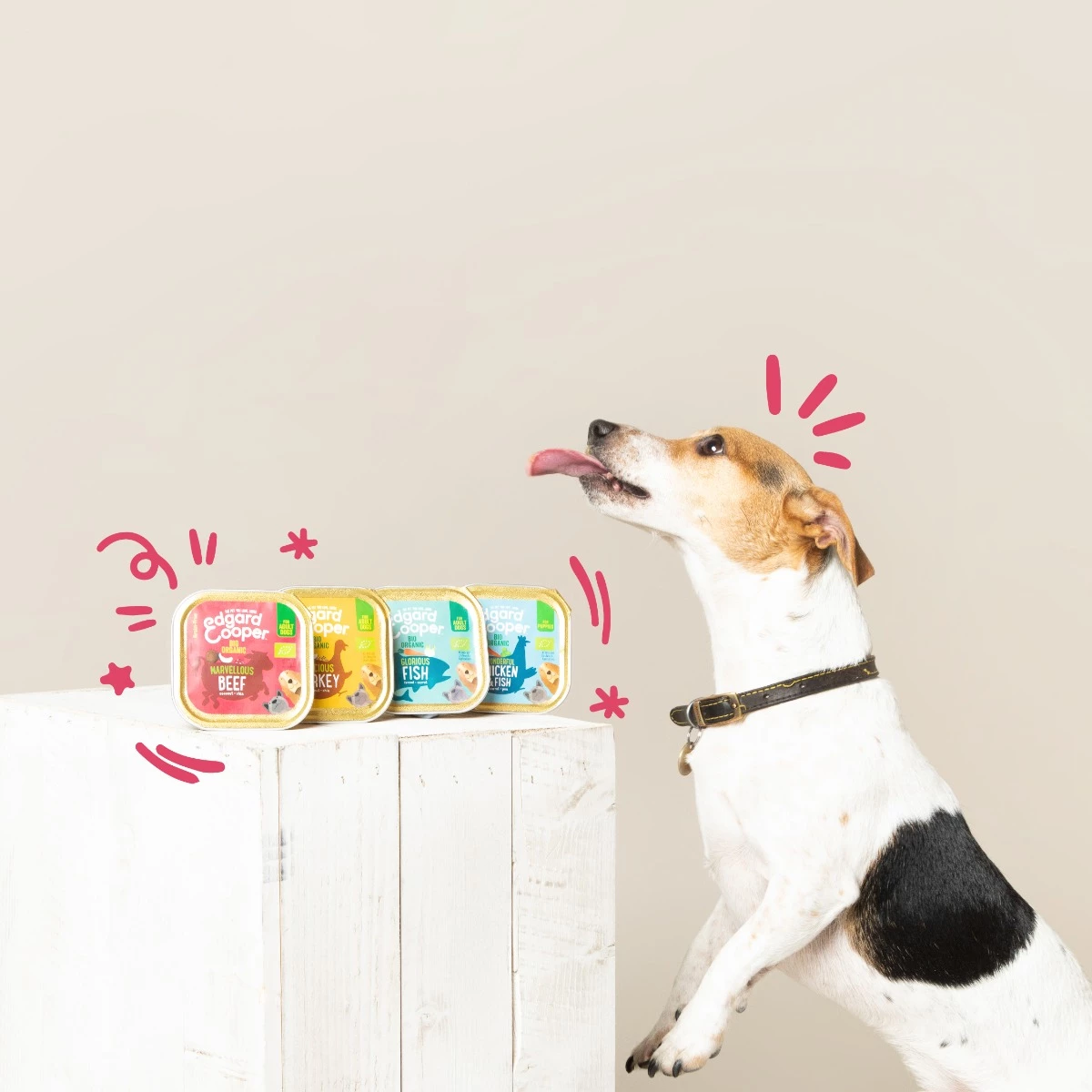 In pratiche vaschette da 100 g, l’alimento Edgard & Cooper è disponibile nelle varianti:
