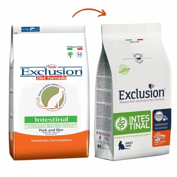 Exclusion Diet Cat Intestinal Maiale e Riso è un alimento Secco Completo con formulazione monoproteica per gatti con patologie gastrointestinali, maldigestione e malassorbimento. Exlusion Diet ha formulato il prodotto per un’alimentazione dietetica, ideale alla riduzione di disturbi acuti dell’assorbimento intestinale e come soluzione alla cattiva digestione.