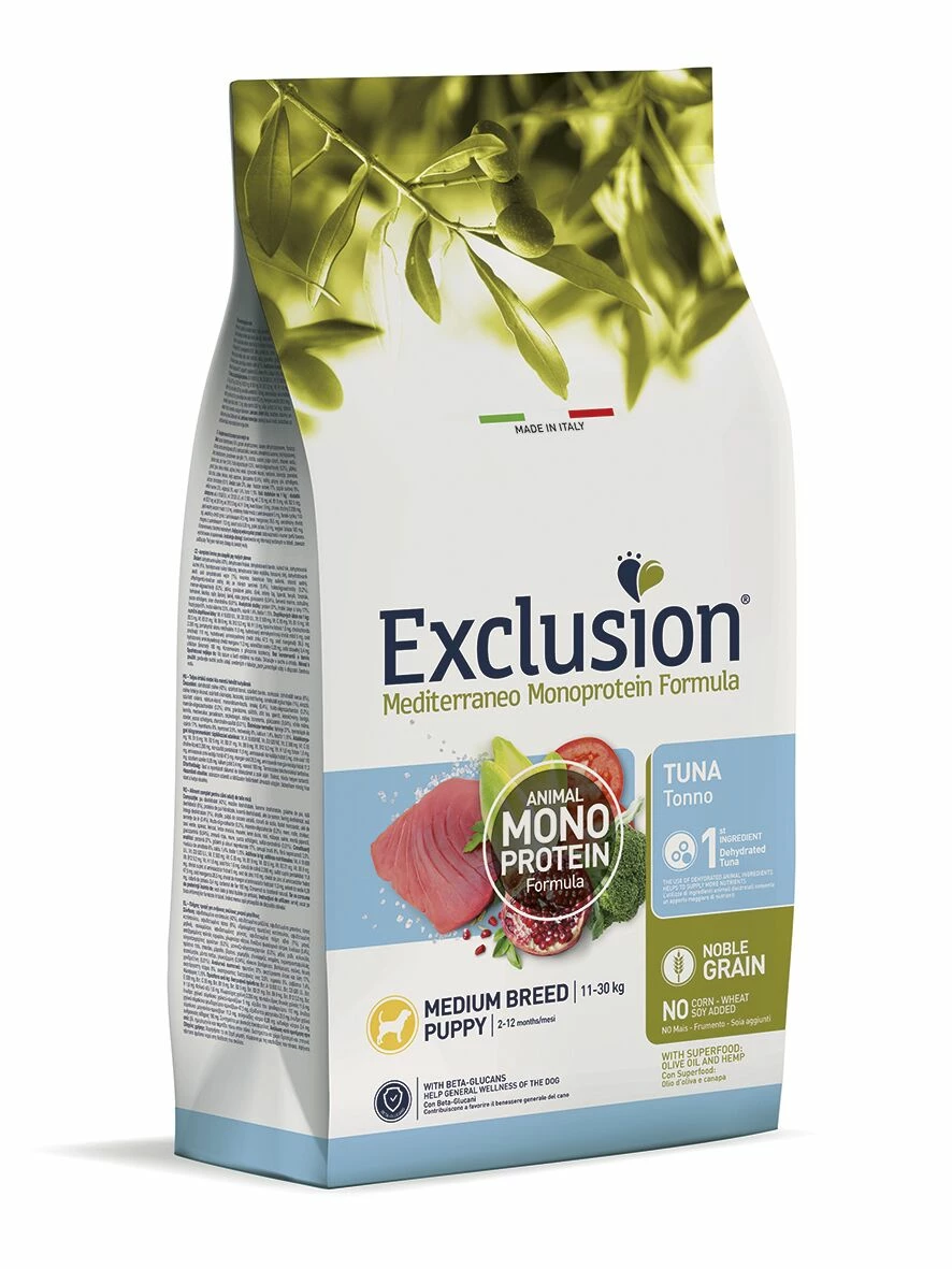 Exclusion Mediterraneo Puppy Medium Breed Tonno è un alimento secco completo per cuccioli di taglia media. La sua formula esclusiva favorisce una crescita equilibrata e sana del cucciolo. Gli ingredienti, i migliori della tradizione mediterranea, come il pesce, rendono questo prodotto facilmente digeribile e altamente appetibile. Inoltre, fornisce il giusto fabbisogno energetico all’animale durante la fase di sviluppo.