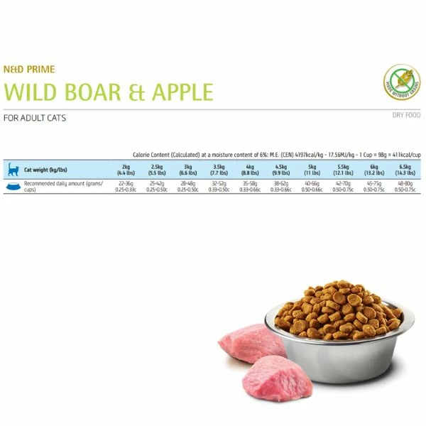 Grazie a ingredienti come il cinghiale fresco italiano, allevato in Toscana e Umbria, e alla mela fonte di fibre naturali e antiossidanti, queste crocchette apportano la giusta energia all’animale. L’utilizzo di soli prodotti freschi e di altissima qualità permette di soddisfare il fabbisogno energetico del gatto e rendere il pasto ancora più gustoso, perfetto anche per i mici dal palato più fine. La linea Grain Free Natural & Delicious è stata sviluppata per soddisfare le esigenze nutrizionali e i gusti del gatto, offrendo un apporto equilibrato di proteine, vitamine e minerali, senza aggiunta di cereali, “grain – free”.