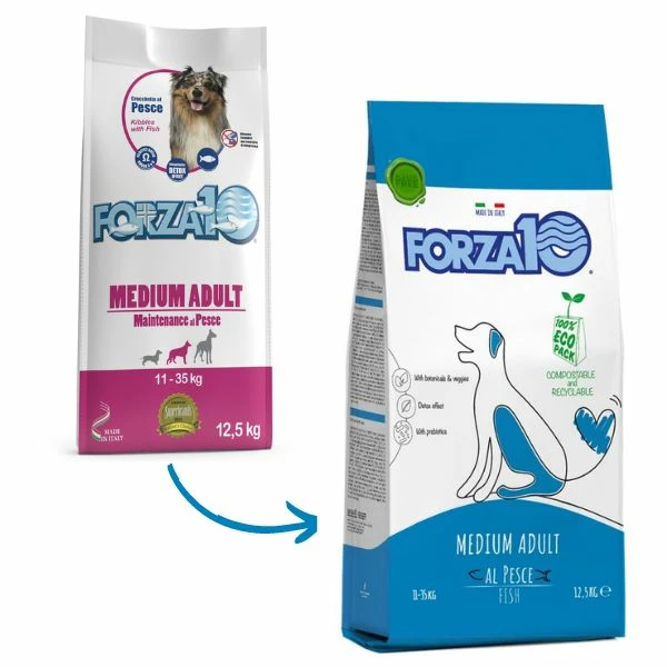 Forza10 Medium Adult Maintenance al Pesce è un alimento di mantenimento, completo e bilanciato, per cani adulti di taglia media. Il pesce rappresenta una fonte proteica ad elevatissimo valore biologico e altamente digeribile.