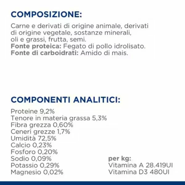 Hill’s Prescription Diet z/d Feline è un alimento umido completo formulato dai veterinari per l’ipersensibilità alimentare e le dermatiti pruriginose. Allergia e intolleranza al cibo, definite anche reazioni allergiche al cibo, possono causare gravi problemi alla cute e allo stomaco del gatto