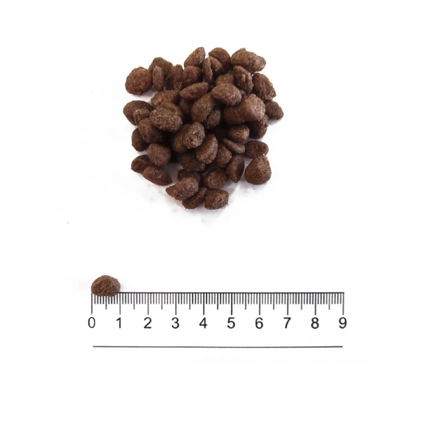 Componenti analitici: Proteina 26%, Tenore in materia grassa 15%, Fibre grezze 2,5%, Materia inorganica 7,6%, Omega 3 1,45%, Omega 6 2,94%, Calcio 1,8%, Fosforo 1,1%, Sodio 0,75%, Potassio 0,67%, Magnesio 0,12%