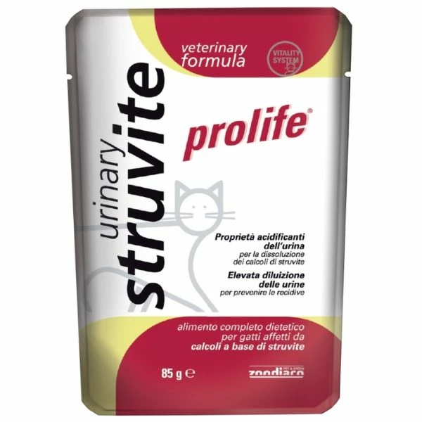 Prolife Veterinary Formula Urinary Struvite è l’alimento completo dietetico per gatti affetti da calcoli a base di struvite. Le proprietà acidificanti dell’urina favoriscono la dissoluzione dei calcoli mentre l’apporto energetico controllato riduce il rischio di obesità