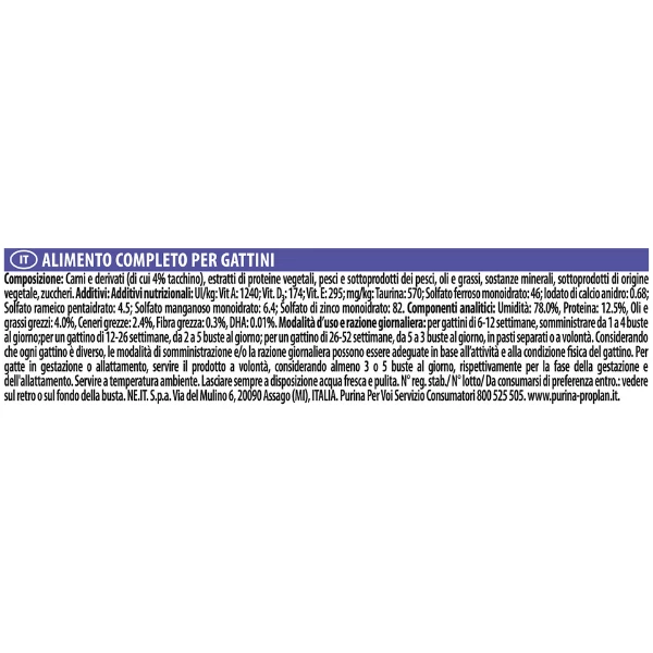Pro Plan Junior Nutrisavour in salsa con Tacchino è un alimento completo per gattini di 6-12 settimane di età, composto da teneri pezzetti con tacchino in salsa. Questa deliziosa ricetta in salsa contiene tutti i nutrienti essenziali che aiutano a supportare la crescita sana di ossa e muscoli.