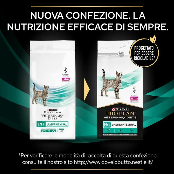 Purina pro plan veterinary diets gastrointestinal EN è un alimento dietetico completo per gattini e gatti adulti per la riduzione dei disturbi dell’assorbimento intestinale, la ripresa nutrizionale e la convalescenza. Alimento per gatti altamente digeribile con maggiori quantità di sodio e potassio, elevata densità energetica, elevate concentrazioni di sostanze nutritive essenziali e di ingredienti altamente digeribili.