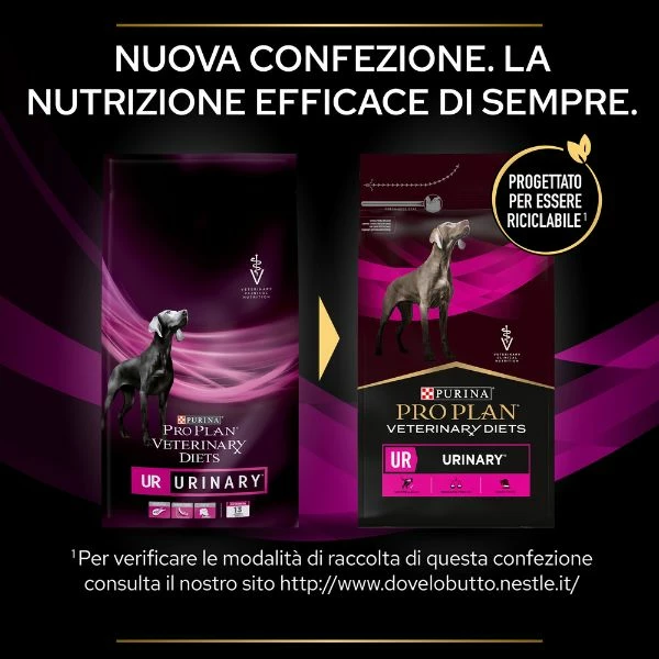 Purina pro plan veterinary diets urinary UR è un alimento dietetico completo per cani adulti per la dissoluzione di calcoli a base di struvite con proprietà acidificanti dell’urina e basso livello di magnesio.