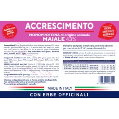 Modalità d’uso: Il prodotto è pronto all’uso e va servito a temperatura ambiente. Lasciare sempre a dispozione acqua fresca. Il prodotto può essere utilizzato tal quale oppure in aggiunta alla razione minima consigliata di un alimento secco adeguato al mantenimento del cane adulto con intolleranze alimentari.